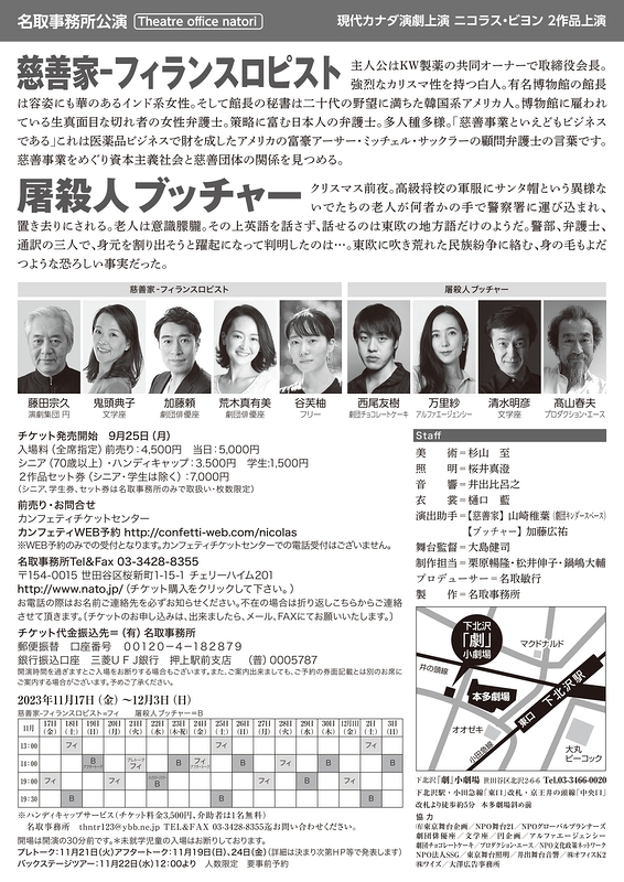 【演出助手】〔慈善家〕山崎稚葉(劇団キンダースペース)/〔ブッチャー〕加藤広祐