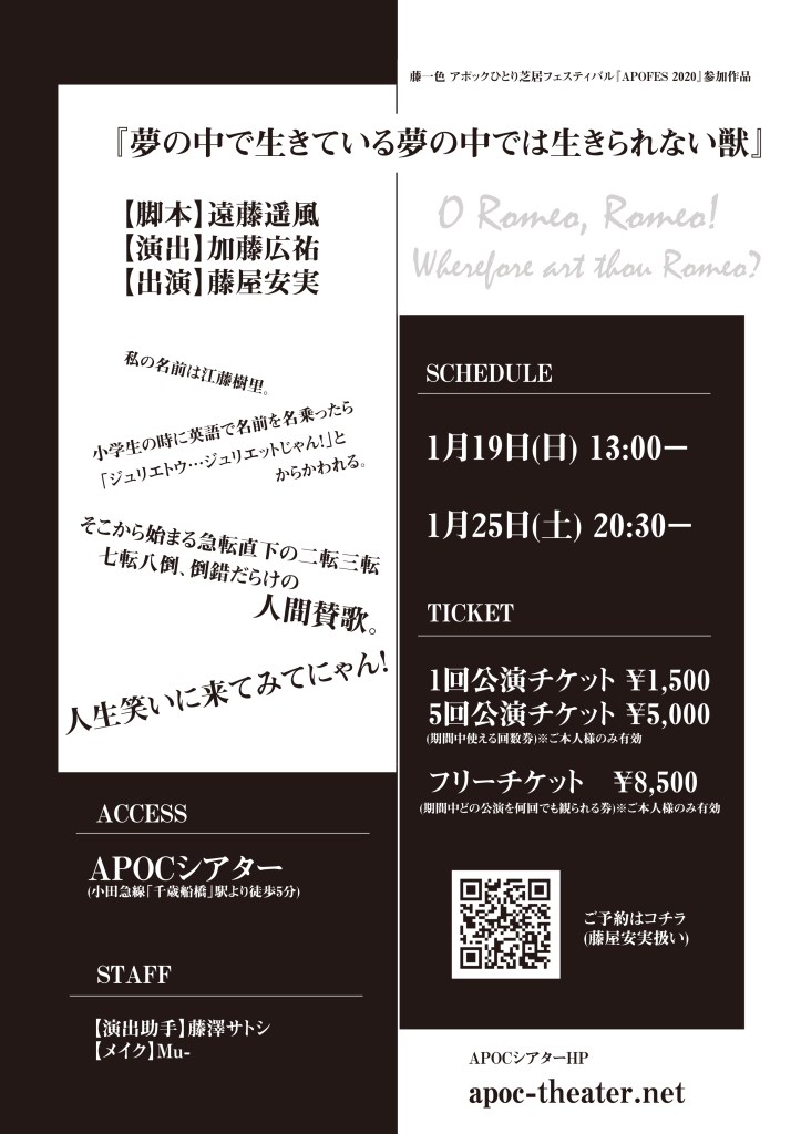 【藤屋安実】2020年1月出演(作:遠藤遥風/演出:加藤広祐)